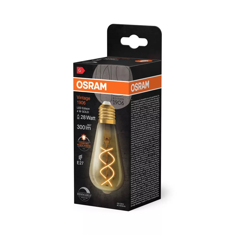 LED dekoratív izzó ST64 Edison E27 4W = 28W 300lm 2000K Meleg 300° Szabályozható Vintage 1906 Osram