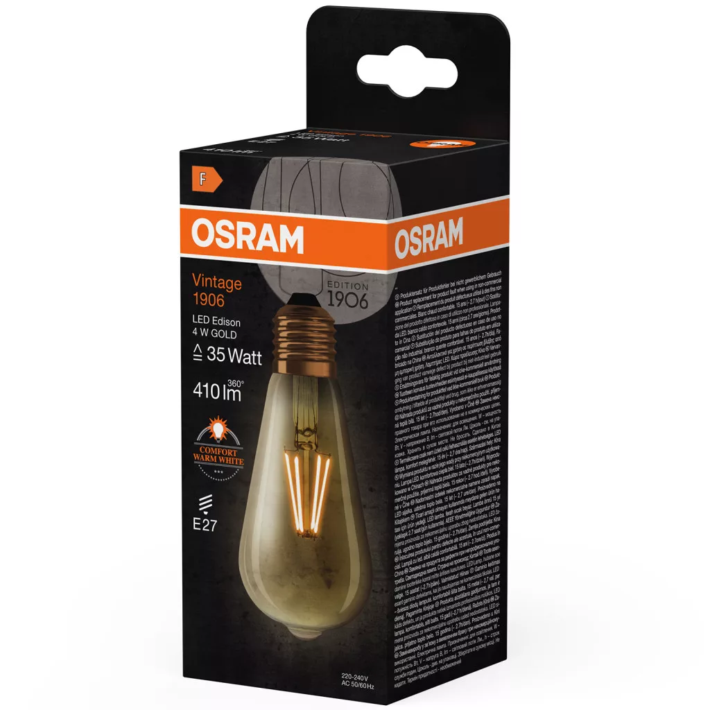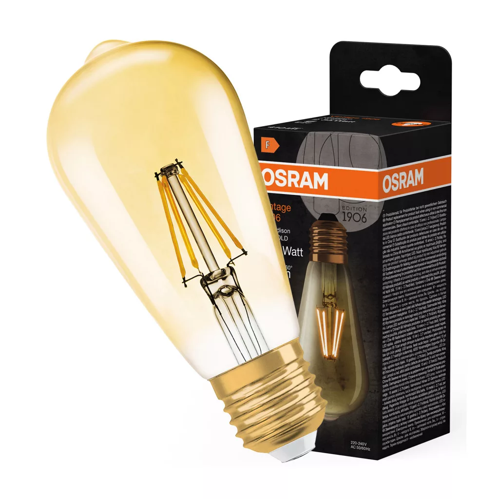 LED izzó E27 ST64 4W = 35W 410lm 2400K meleg 300° izzószál OSRAM Vintage 1906