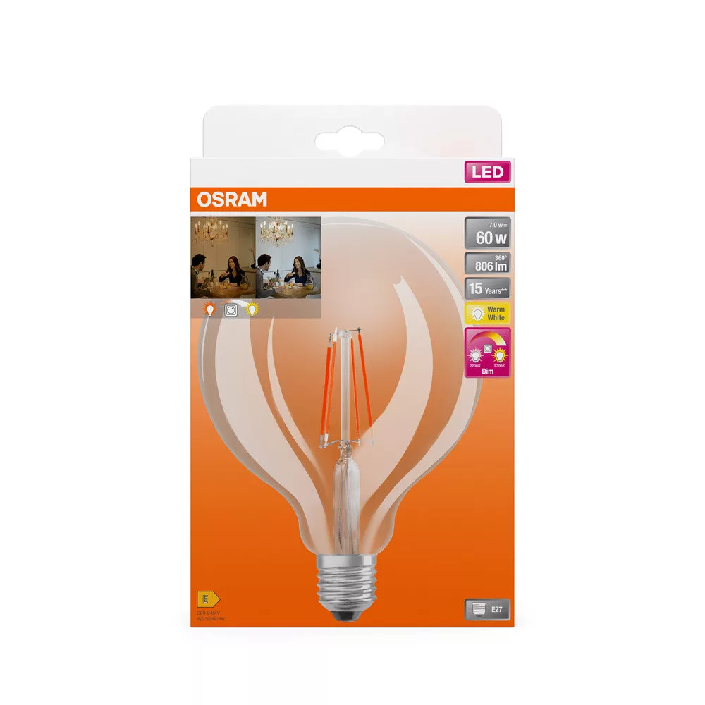 LED izzó G124 gömb alakú E27 7W = 60W 806lm 2200-2700K CCT 320° Szabályozható SUPERSTAR Osram