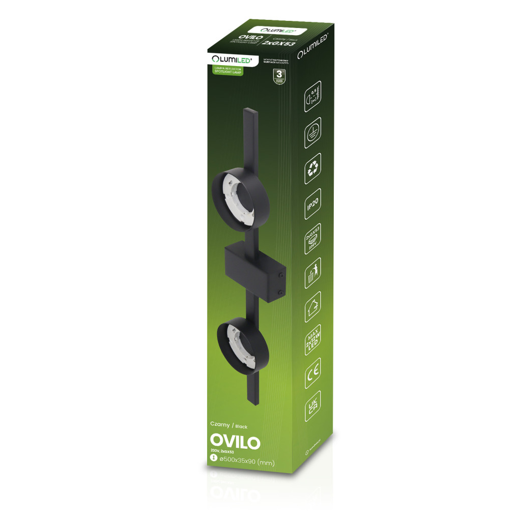 OVILO Mennyezeti Lámpa Halogén LED Lámpatest 2x GX53 Spot Fali Lámpa Reflektor Fali LUMILED
