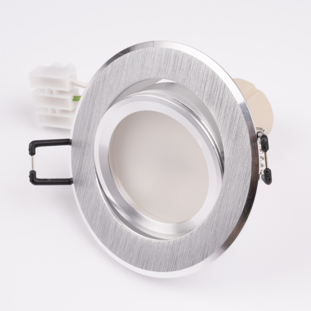 Halogén süllyesztett lámpatest, kerek, mozgatható, TRIX 3 az 1-ben, 6W GU10, 4000K, szálcsiszolt ezüst, LUMILED