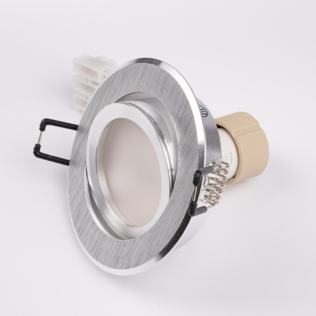 Halogén süllyesztett lámpatest, kerek, mozgatható, TRIX 3 az 1-ben GU10, 6W, 4000K, szálcsiszolt ezüst, LUMILED