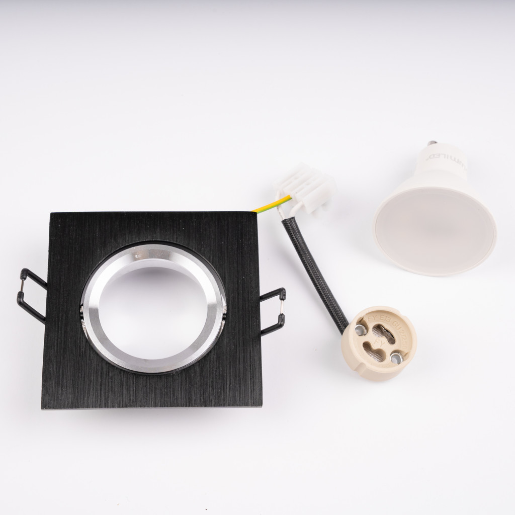 Süllyesztett, négyzet alakú halogén lámpatest TRIX 3in1 GU10 6W 3000K fekete LUMILED