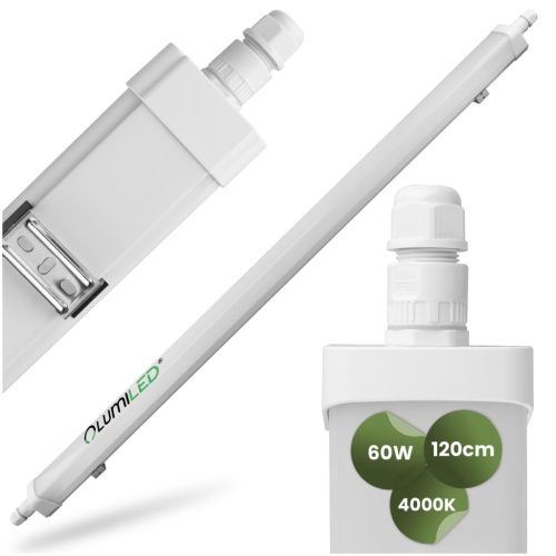 Hermetikus LED műhelylámpa 120 cm garázsba 60W 4000K Vízálló TERRA LUMILED