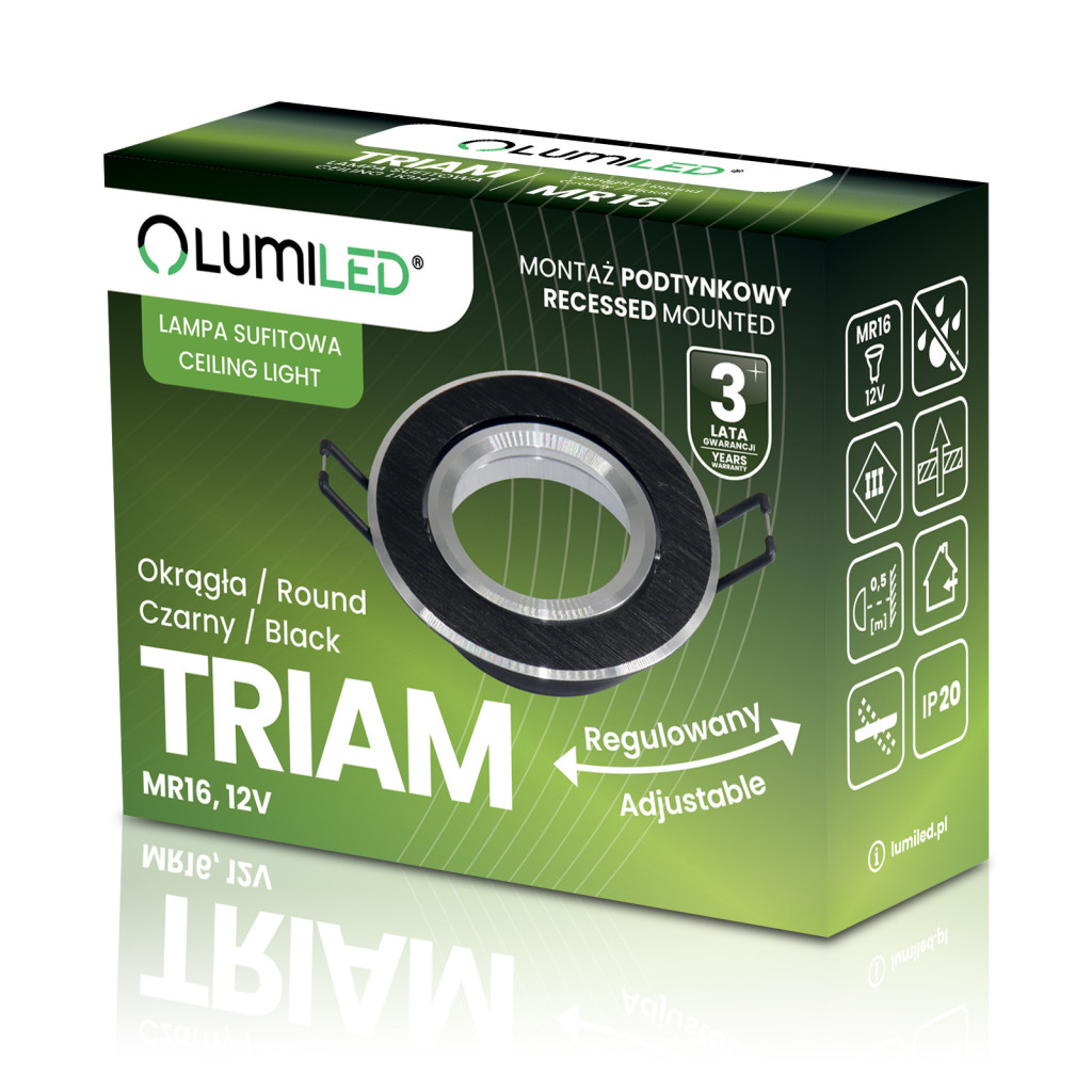 Halogén süllyesztett mennyezeti lámpa, kerek, mozgatható, GU10, MR16, fekete, TRIAM LUMILED