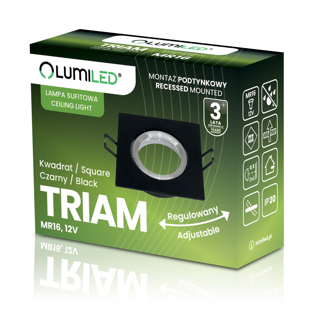 Halogén süllyesztett mennyezeti lámpa, négyzet alakú, mozgatható, GU10, MR16, fekete, TRIAM LUMILED