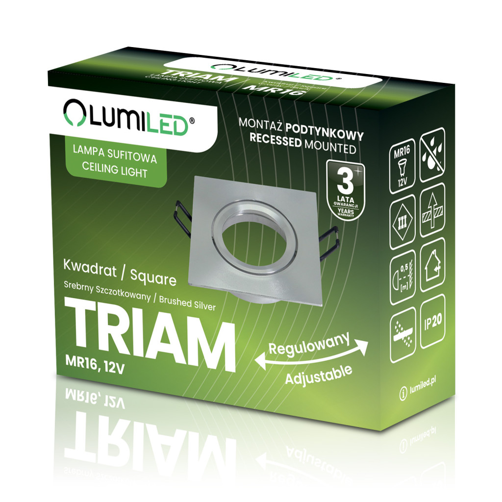 Halogén süllyesztett mennyezeti lámpa, négyzet alakú, mozgatható, GU10, MR16, ezüst, TRIAM LUMILED