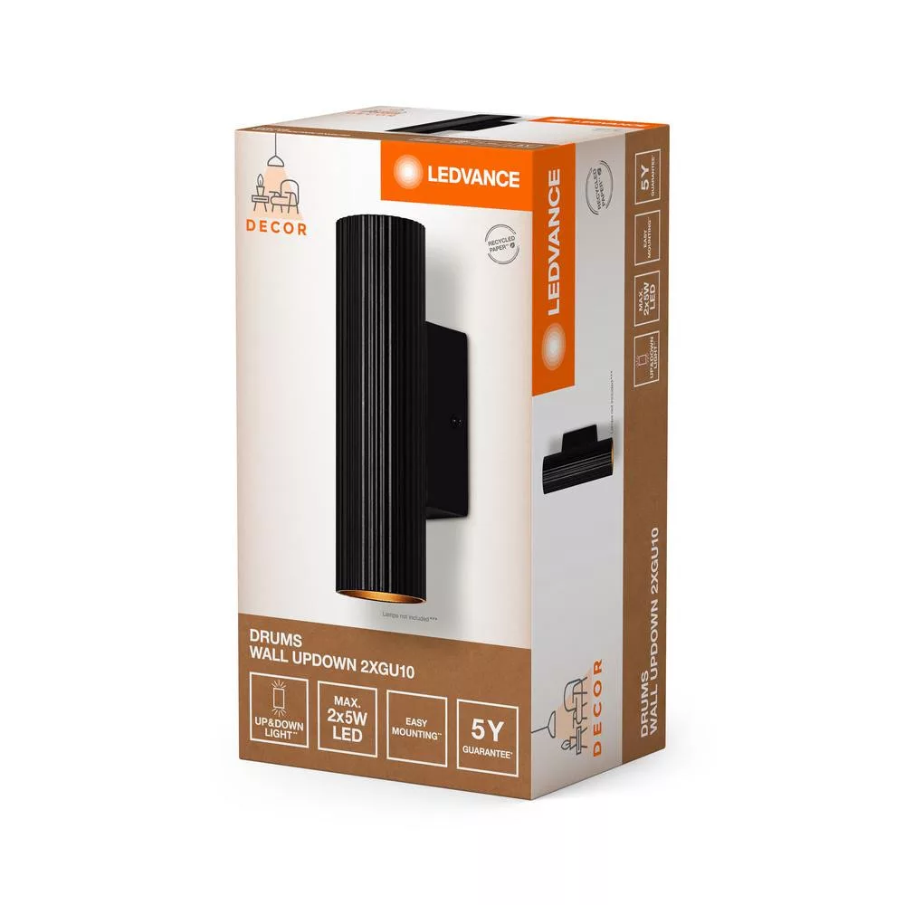 Dekoratív fali lámpa, fali szerelvény, GU10, fekete, dekoratív Ledvance