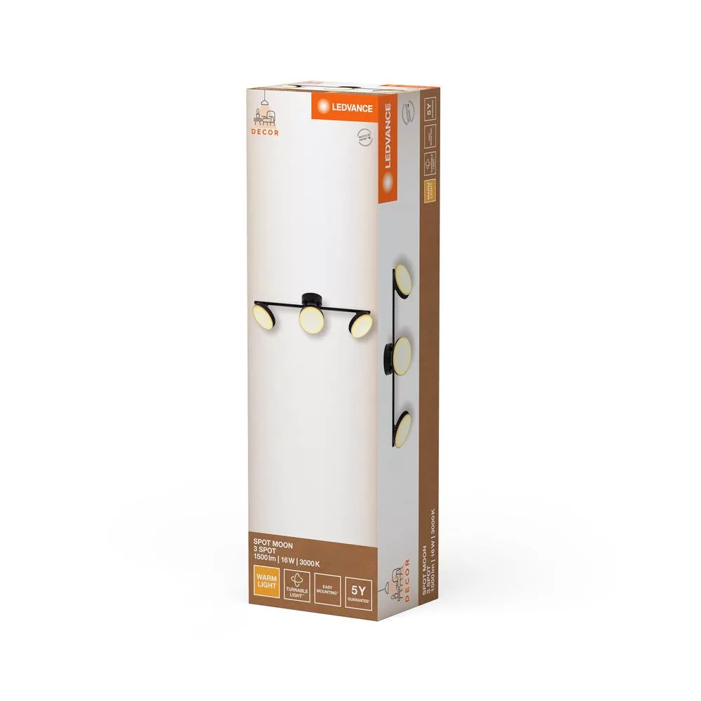 LED Fali Mennyezeti Lámpa, Felületre Szerelt, 16W, 840lm, CCT, Dekoratív Fekete Spotlámpa, Holdfény, Ledvance