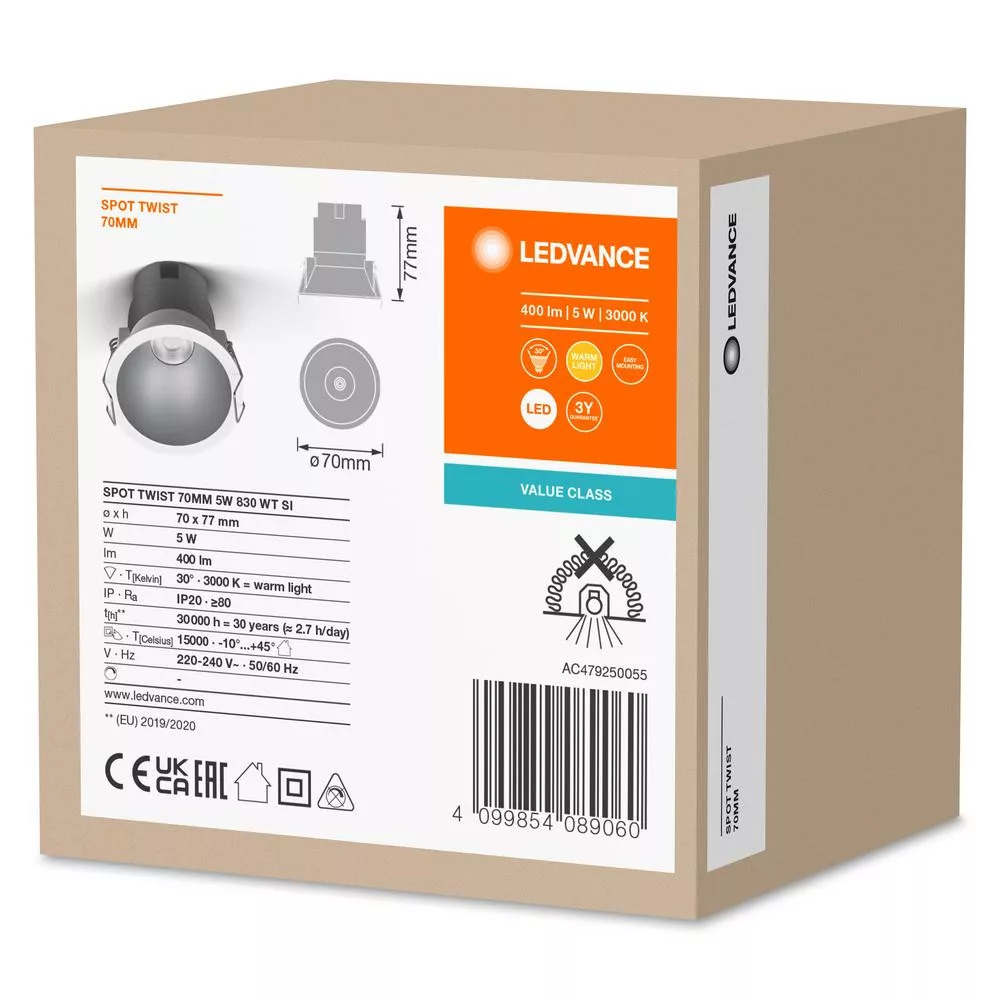 LED Panel Süllyesztett Spotlámpa 5W 400lm CCT Spot Fehér Ezüst Beépíthető Világítás Slim Ledvance