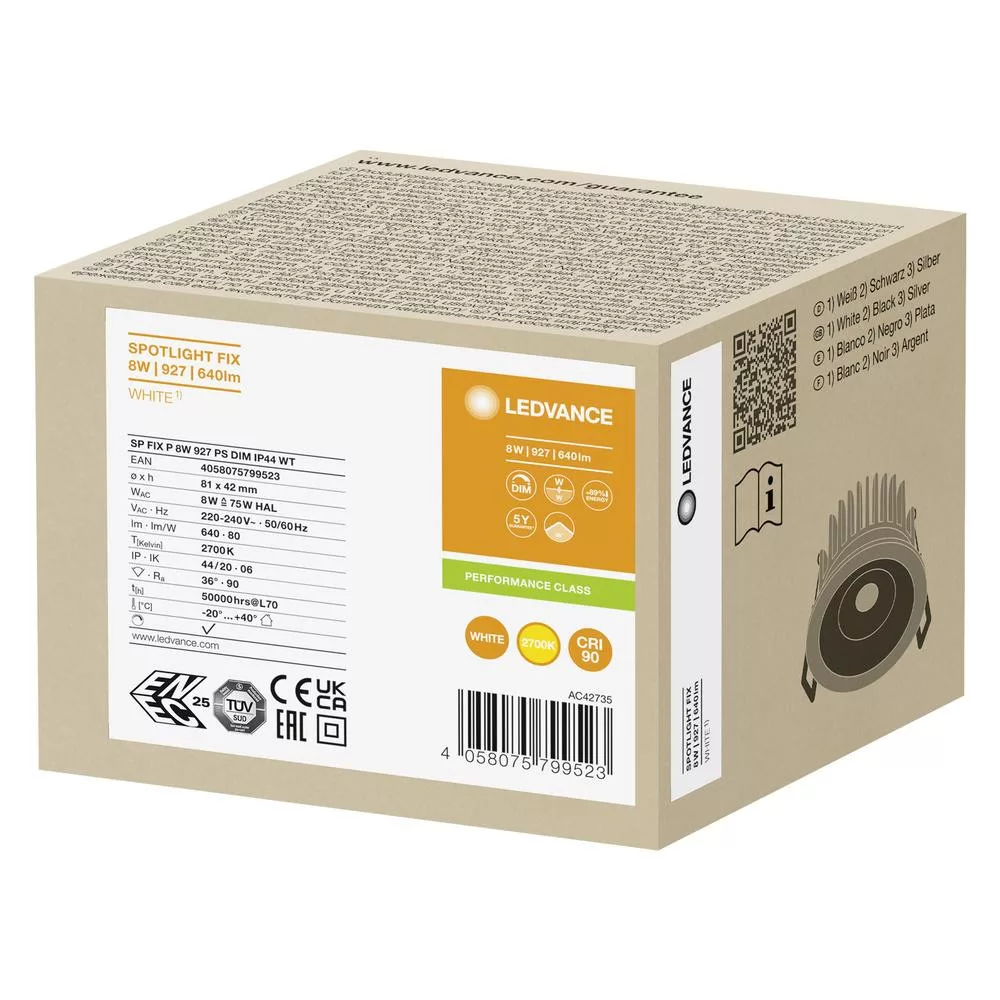 LED panel süllyesztett spotlámpa 8W 640lm 3000K meleg, szabályozható fényerejű spotlámpa fehér fix LEDvance