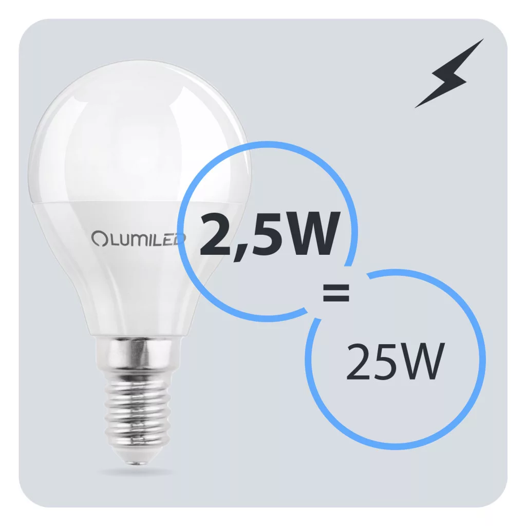 E14 P40 LED izzó 2,5W = 25W 249lm 6500K Hideg 180° LUMILED