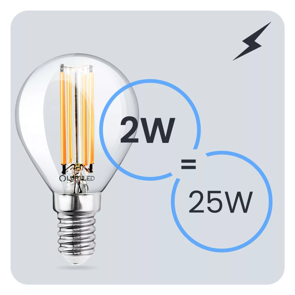 LED izzó E14 P40 2W = 25W 249lm 3000K Meleg 360°-os izzószál LUMILED