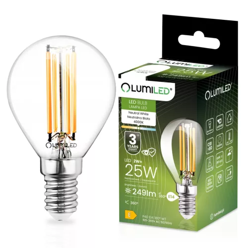 LED izzó E14 P40 2W = 25W 249lm 4000K semleges 360°-os izzószál LUMILED