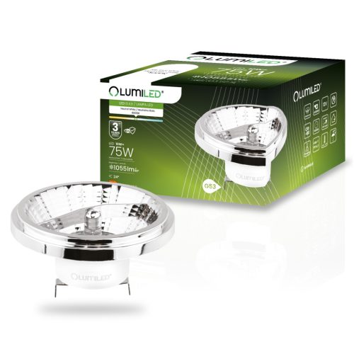 LED izzó G53 AR111 10W = 75W 1055lm 4000K Semleges 24° 12V AC/DC Ezüst LUMILED