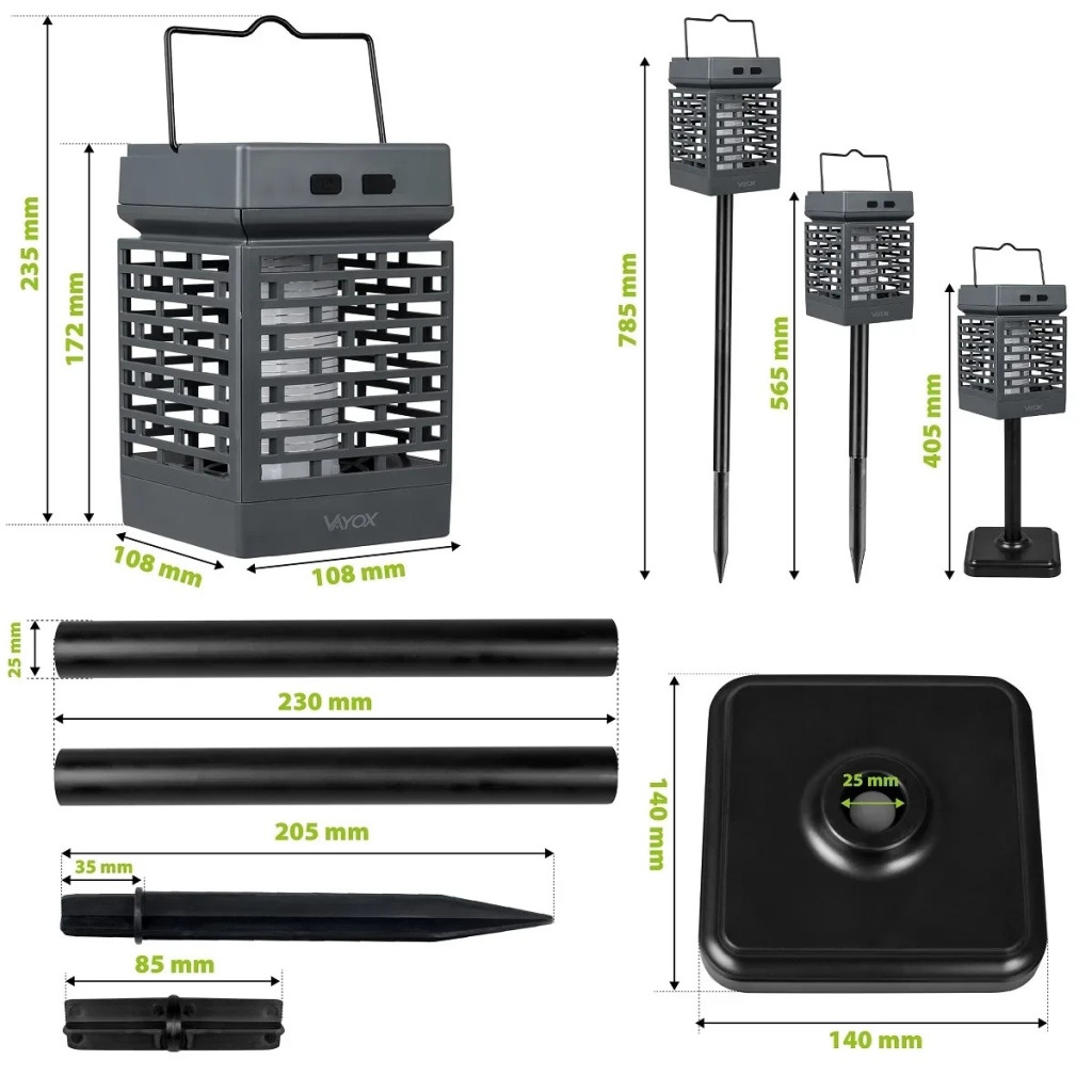 Rovarölő lámpa, elektromos UV csapda, napelemes lámpa, 2 az 1-ben, 5 W, legyek, szúnyogok, rovarok ellen, VAYOX