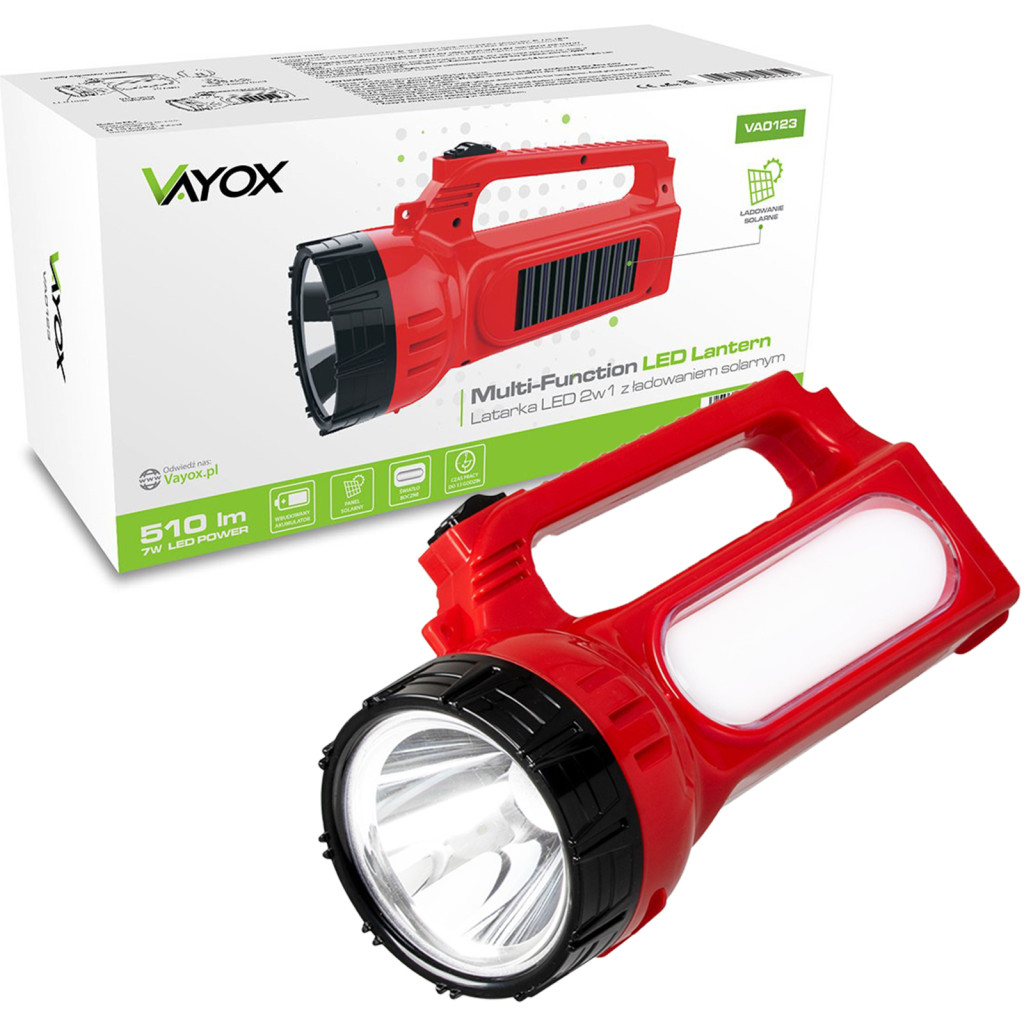 Újratölthető zseblámpa 2 az 1-ben 400 lm oldalsó lámpa és napelemes töltő VA0123 VAYOX