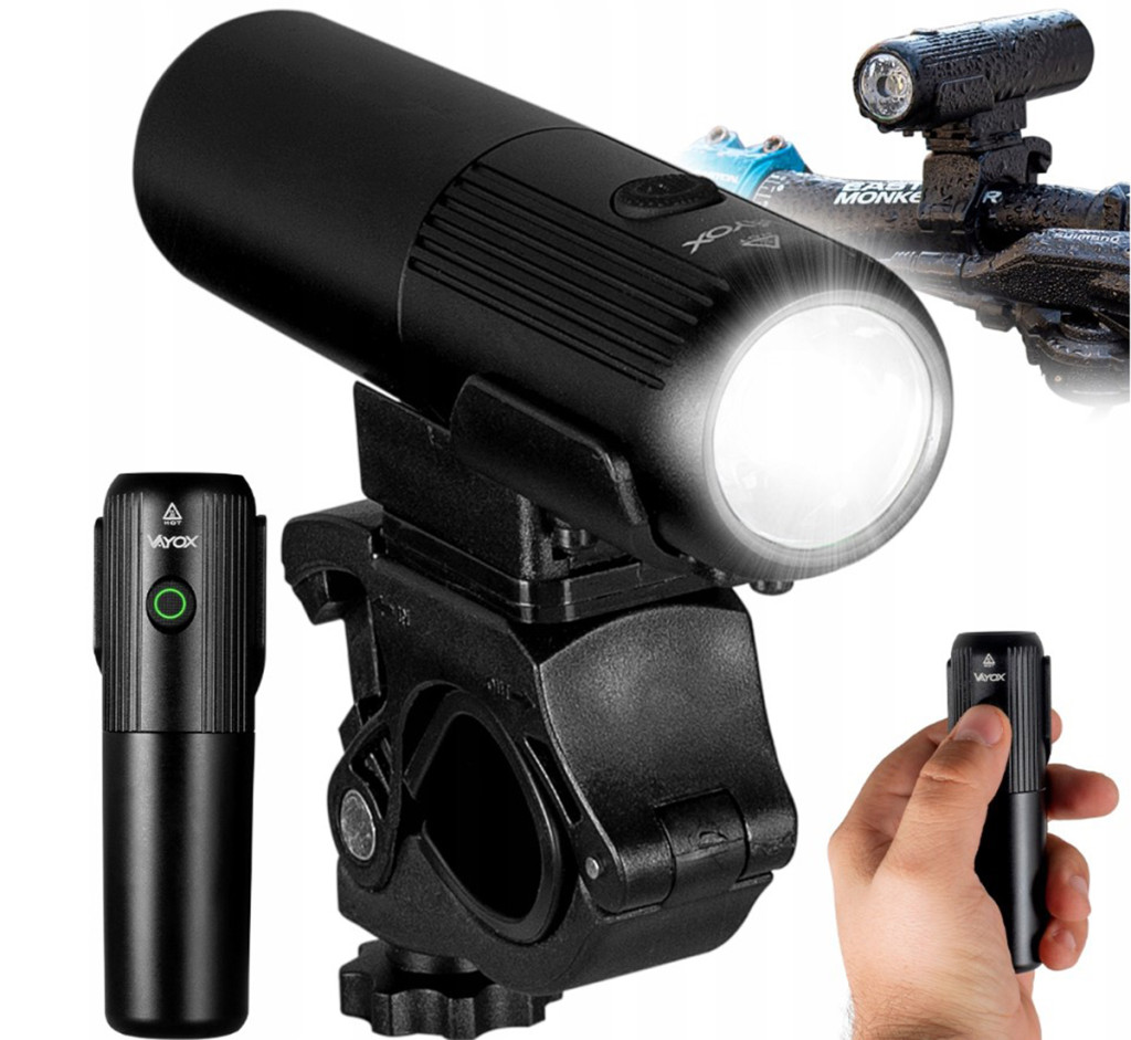 Zseblámpa LED kerékpáros fényszóró USB-C tartó 5 mód 450lm IPX6 VAYOX