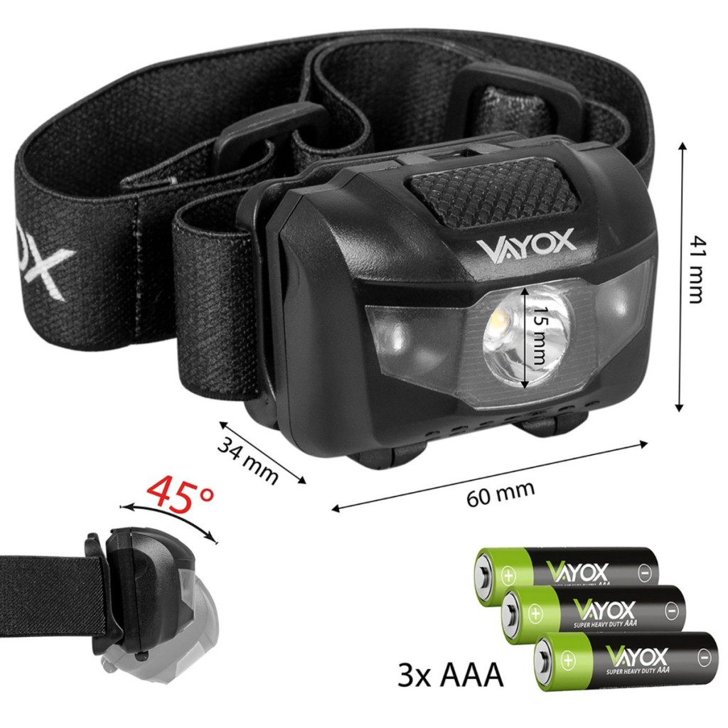 Újratölthető fejlámpa 100lm LED + 2x LED VA0178 VAYOX