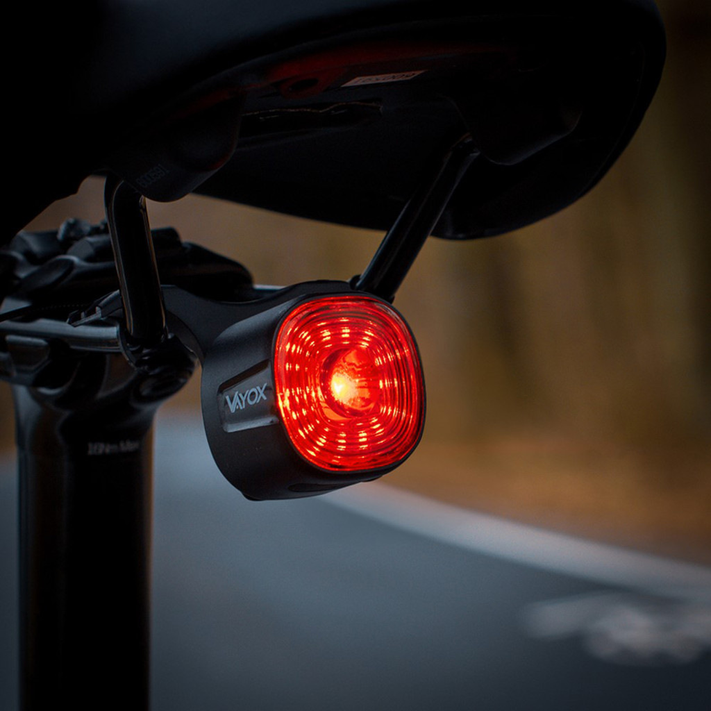 Piros hátsó kerékpáros zseblámpa SMART USB-C 6 módos IP66 ERŐS VAYOX