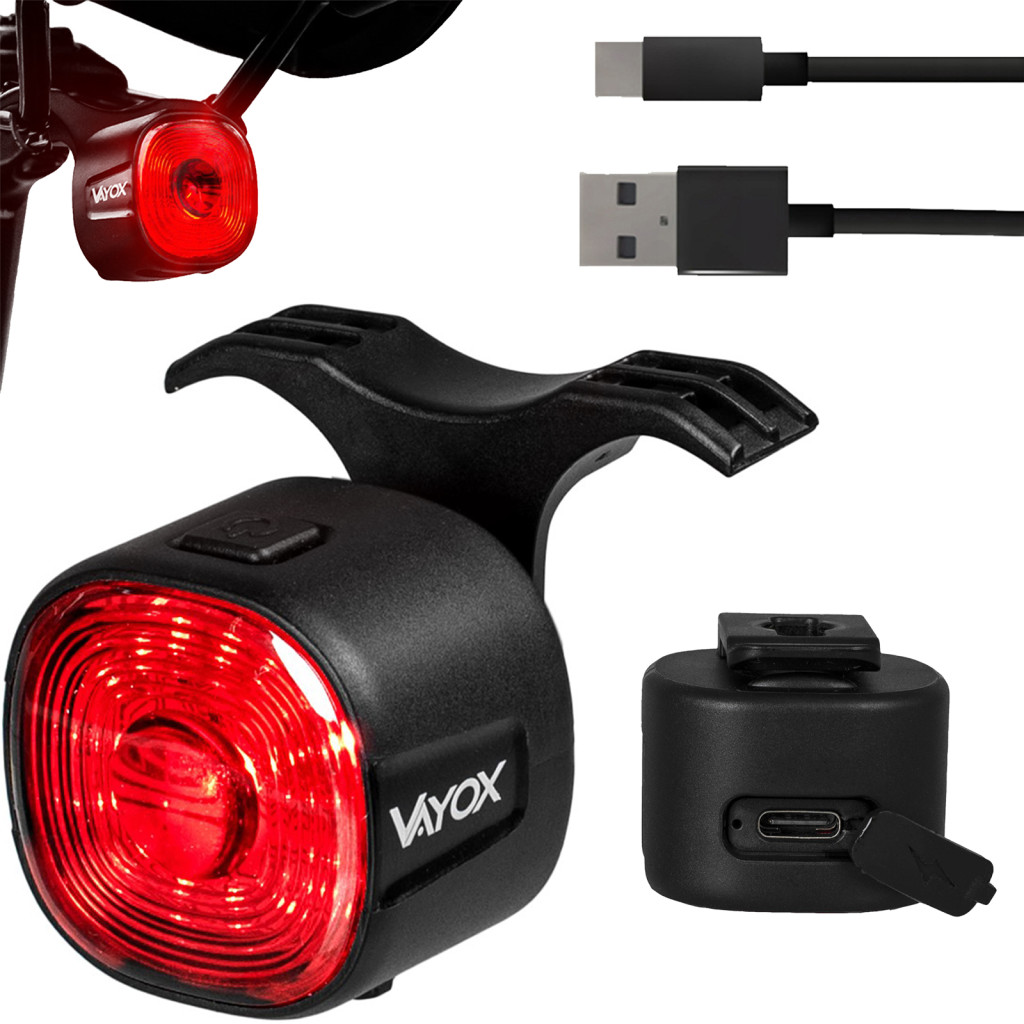 Piros hátsó kerékpáros zseblámpa USB-C 6 mód IP66 ERŐS VAYOX
