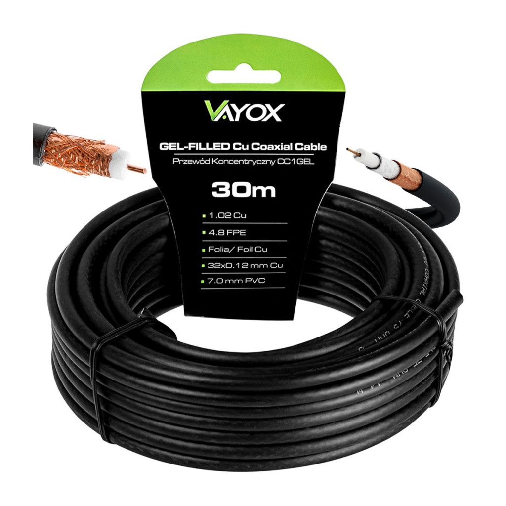 Kábel koaxiális antenna kábel réz gél CU föld 4K Full HD fekete 30M VAYOX