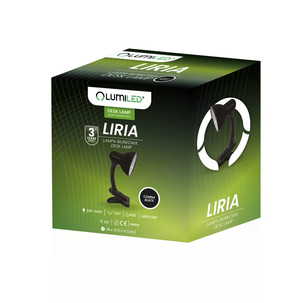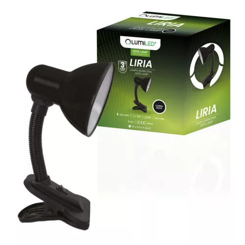 Állítható LIRIA iskolai éjszakai asztali lámpa E27 Clip Fekete LUMILED