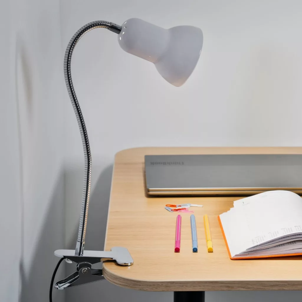 Állítható asztali lámpa asztal DONA School Night E27 Clip Fehér LUMILED