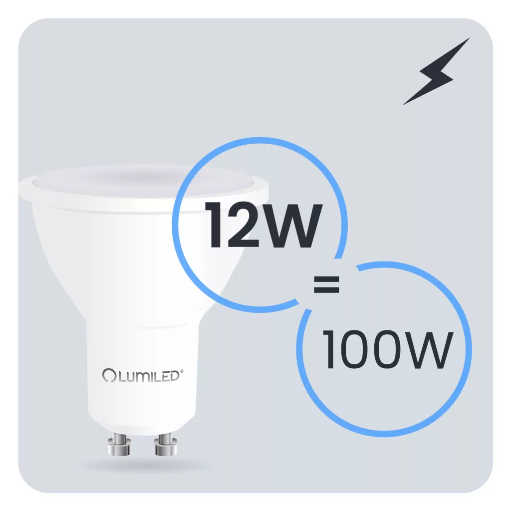 LED izzó GU10 spotlámpa PAR16 12W = 100W 1320LM 6500K Hideg 120° LUMILED