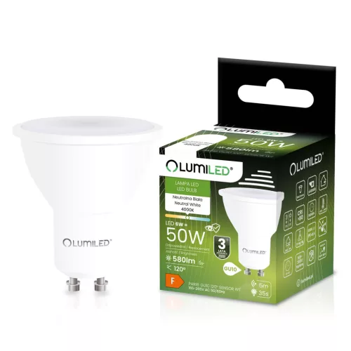 LED izzó GU10 spotlámpa PAR16 6W = 50W 580LM 4000K semleges 120° LUMILED mozgásérzékelővel