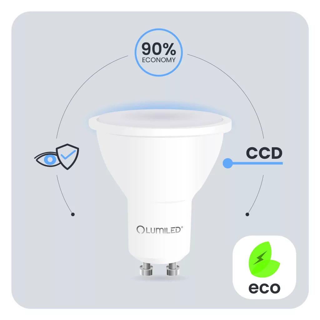 LED izzó GU10 spotlámpa PAR16 8W = 75W 800lm 3000K Meleg 120° LUMILED