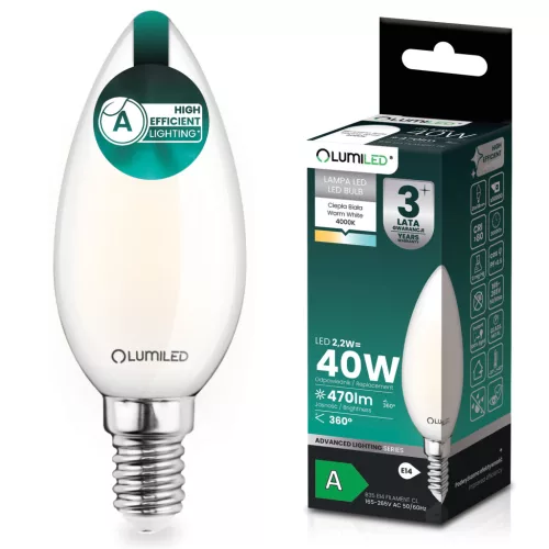LED izzó E14 gyertya B35 2.2W 470lm = 40W 4000K semleges izzószálas 360° A osztályú LUMILED