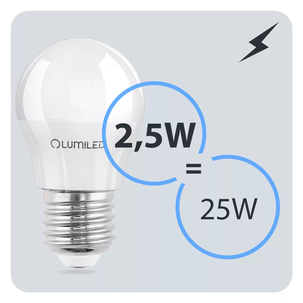 E27 P40 LED izzó 2.5W = 25W 249lm 4000K Semleges 180° LUMILED