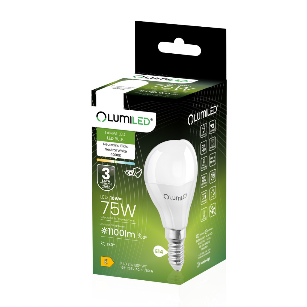 LED izzó E14 gömb alakú 10W = 75W 1100lm 4000K Semleges színű CCD 180° LUMILED