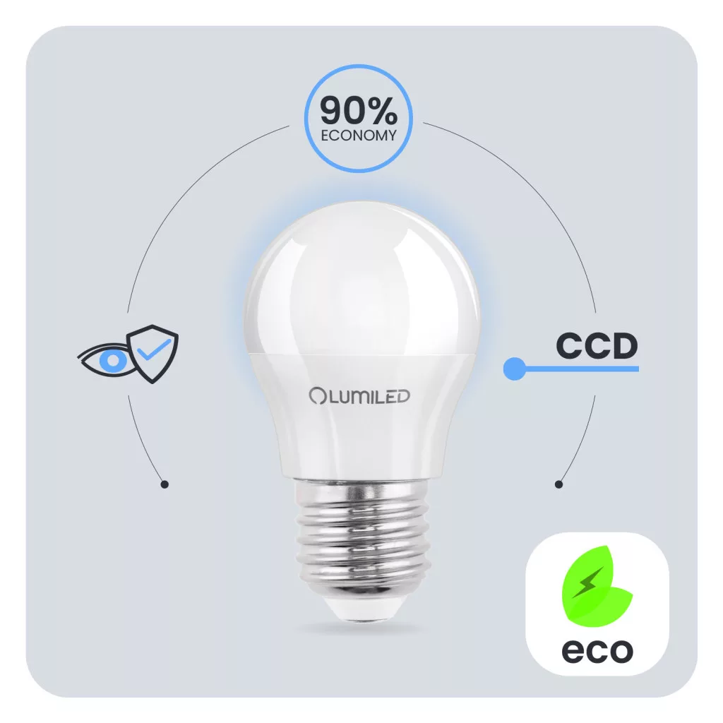 LED izzó E27 gömb alakú P45 10W = 75W 1100lm 6500K Hideg 180° LUMILED