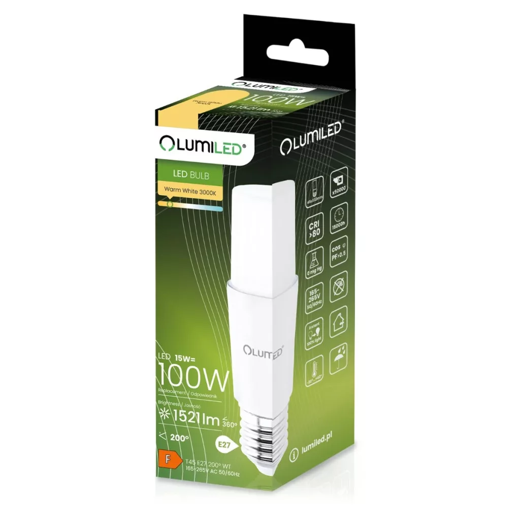 LED izzó E27 15W = 100W 1521lm 3000K meleg Lumiled Stick