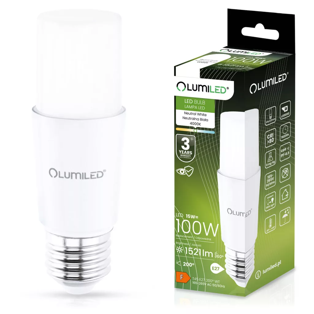 LED izzó E27 15W = 100W 1521lm 4000K Neutral Stick LUMILED