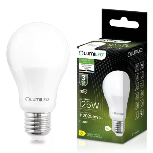 LED izzó E27 A65 15W = 125W 2025lm 4000K Semleges 260° LUMILED