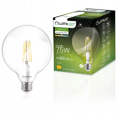E27 G95 LED izzó 8W = 75W 4000K Semleges Globe Izzószál LUMILED