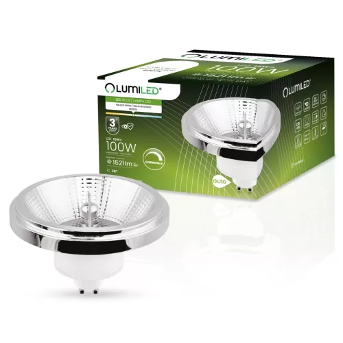LED izzó GU10 ES111 15W = 100W 1521lm 4000K Semleges 38° ezüst fényerőszabályzó LUMILED