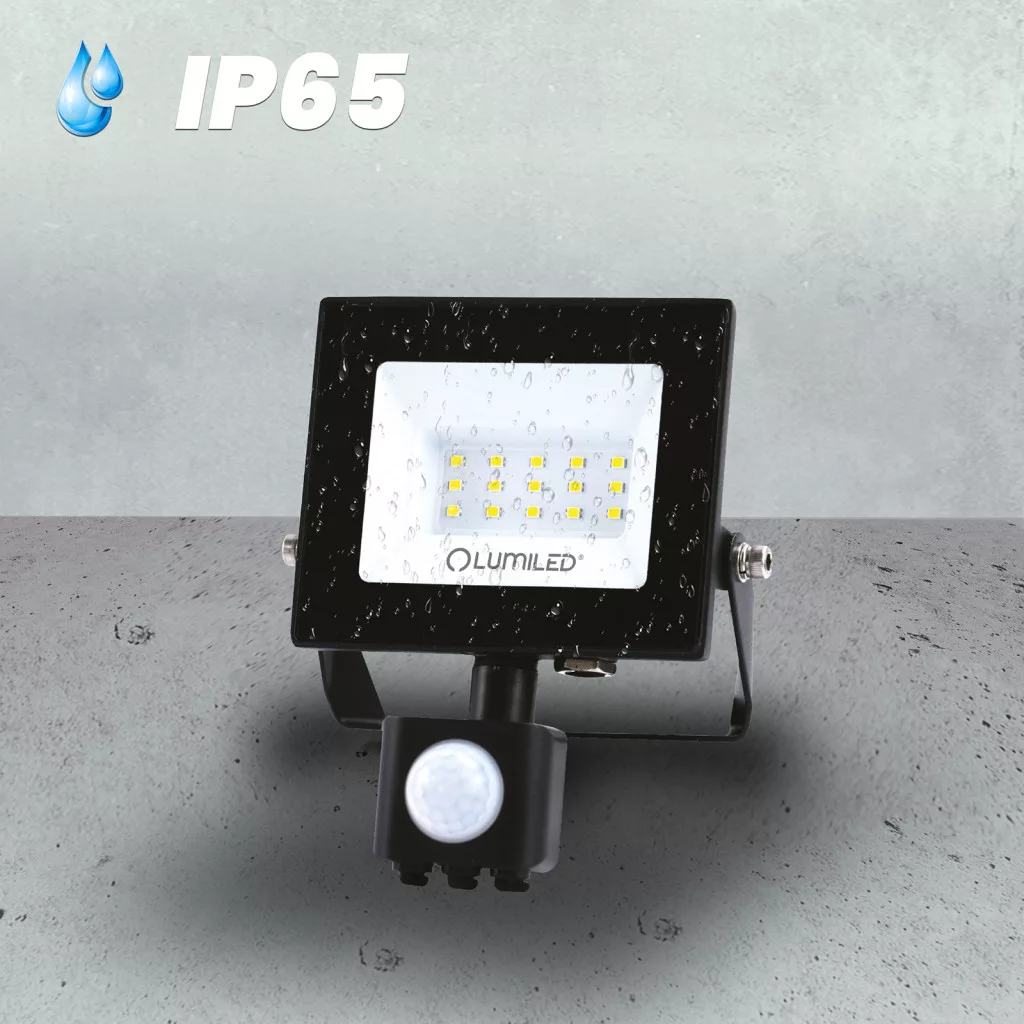 ZUNA2 LED reflektor 10W 900lm 4000K IP44 fekete mozgásérzékelő LUMILED