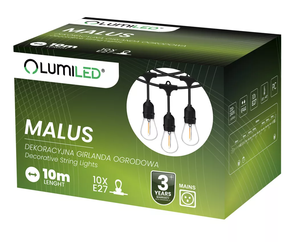Outdoor Garden Girland MALUS fénylánc 10m 10x E27 Lumiled