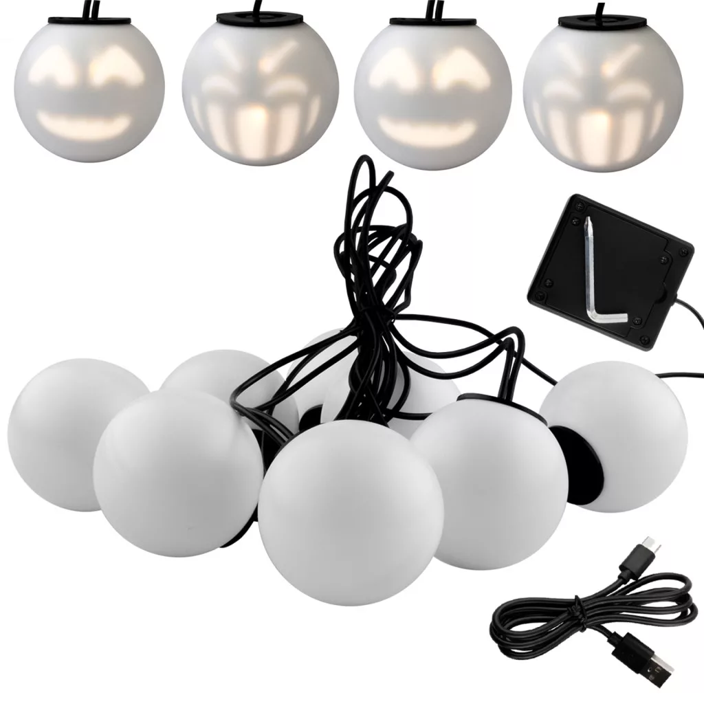 Karácsonyi füzér 8x LED elemes, dekoratív, hóemberek, szellemek, 4,33 m, játszó, fehér + USB C