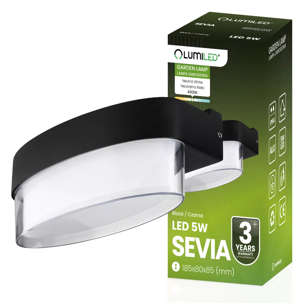 LED kültéri fali lámpa Kerti falikar meleg 4000K 5W IP54 SEVIA fekete LUMILED
