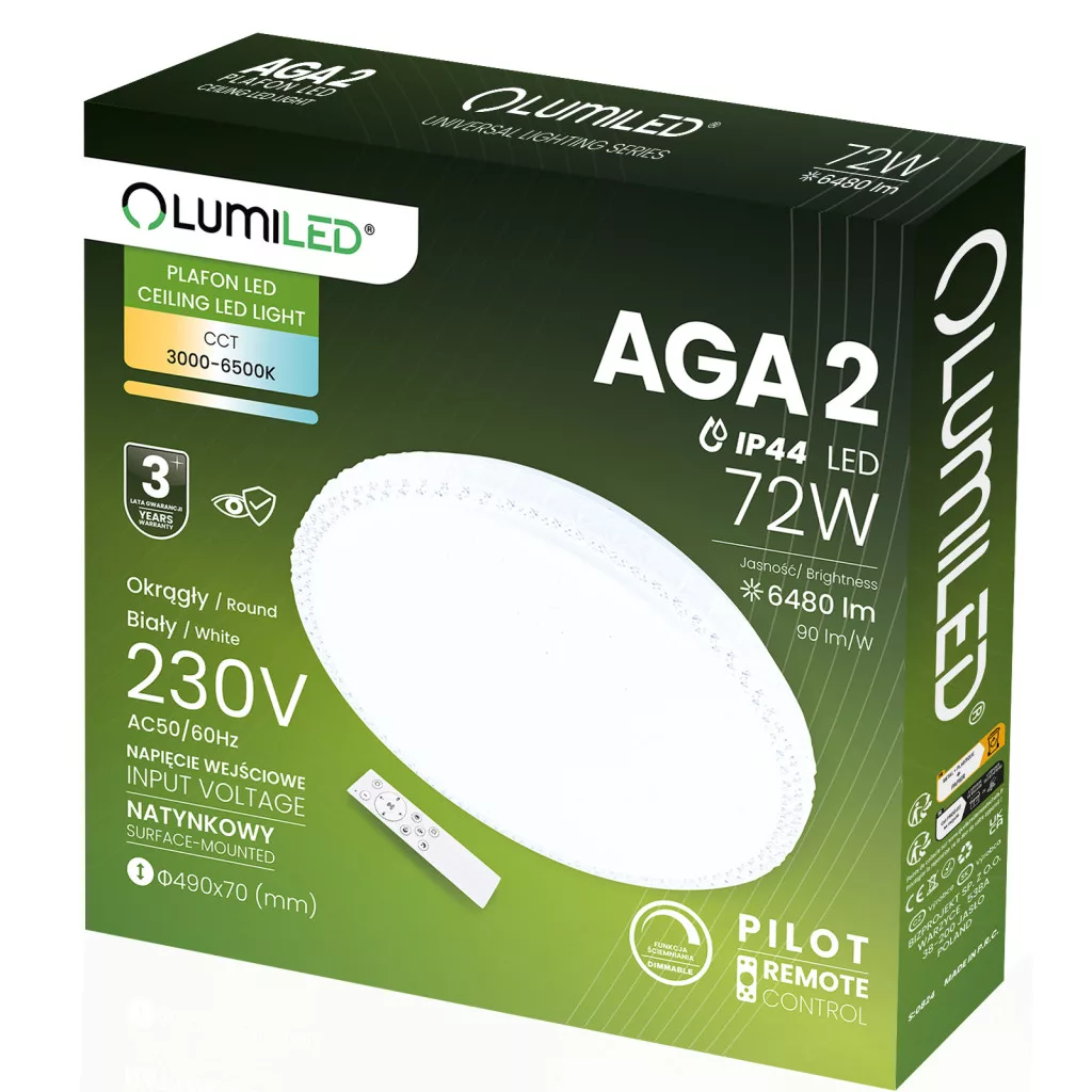 LED Mennyezeti Lámpa Felületre Szerelhető AGA2 72W IP44 CCT Fehér Kerek 50cm + LUMILED TÁVIRÁNYÍTÓ