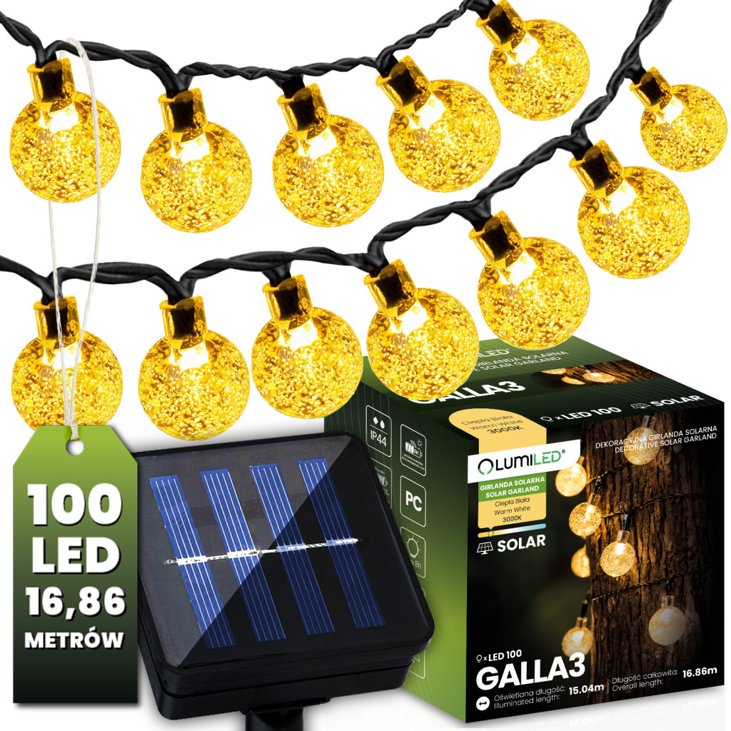 Napelemes kerti girland 100x LED dekoratív gömbök 16,86 m 3000K Meleg GALLA3 LUMILED