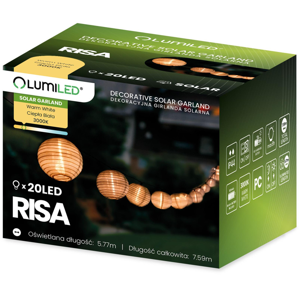 Kerti Solar Girland 20x LED dekoratív lámpák 7,59 m meleg 3000K RISA LUMILED