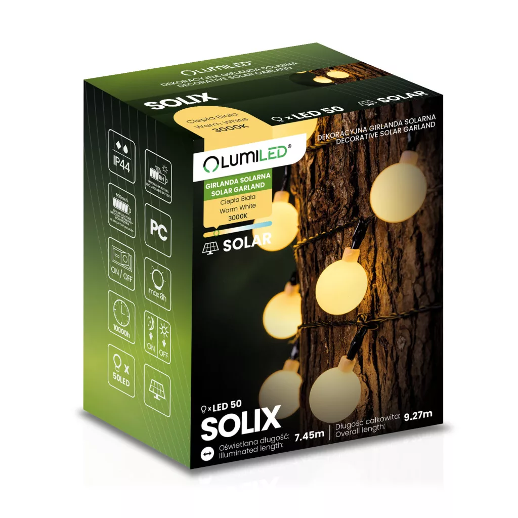 Napelemes kerti girland 50x LED dekoratív gömbök 9,27 m 3000K Meleg SOLIX LUMILED