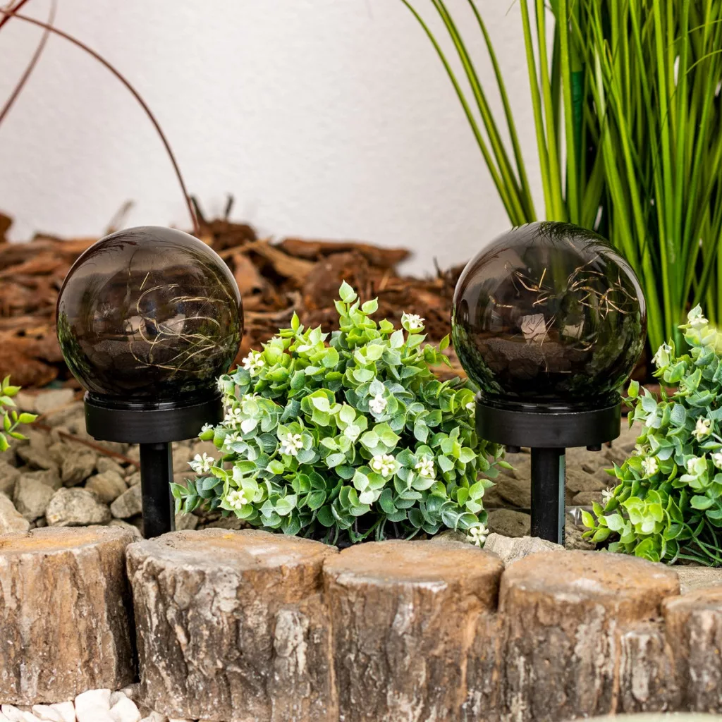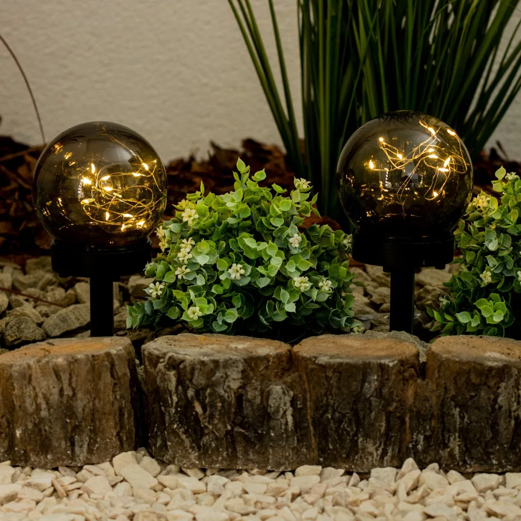 LED napelemes kerti lámpa 3000K IP44 10cm szegecses dekoratív labda GLORIS LUMILED