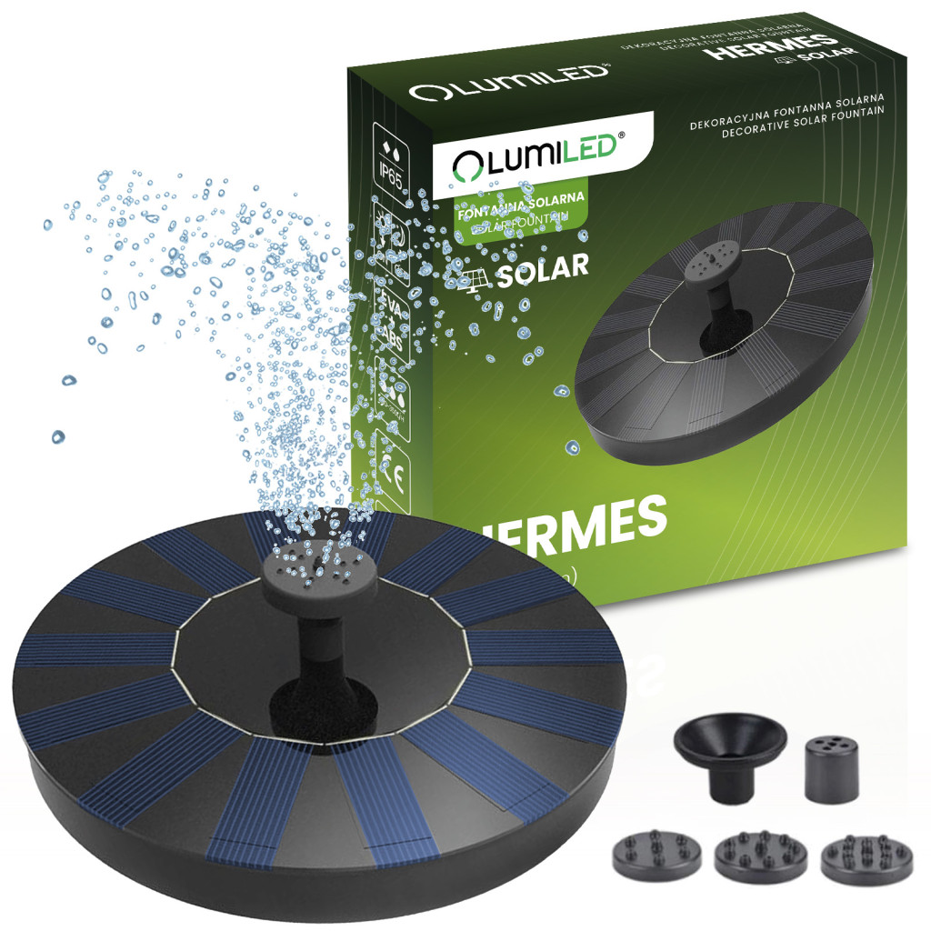Napelemes LED-es szökőkút HERMES kerti úszó szivattyúval 180l/h LUMILED